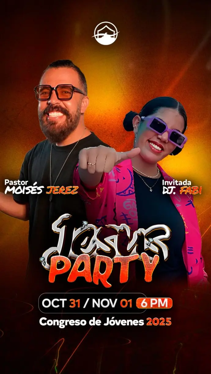 Este 31 de octubre no se trata de disfraces… se trata de propósito. Prepárate para vivir una noche inolvidable de fuego, fe y comunidad en el Congreso Internacional JESUS PARTY, un encuentro diseñado para jóvenes, adultos y familias que desean encender su espíritu y marcar su generación.
